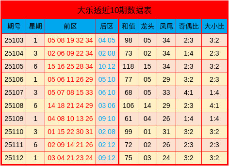 上期回顾:大乐透第2025112期开奖:前区03、04、21、23、24;后区09、12。