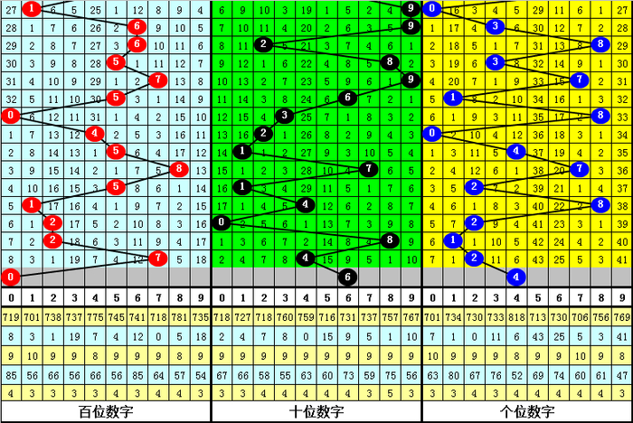 开出次数最少三码为:3、7、9,本期杀一码:7。