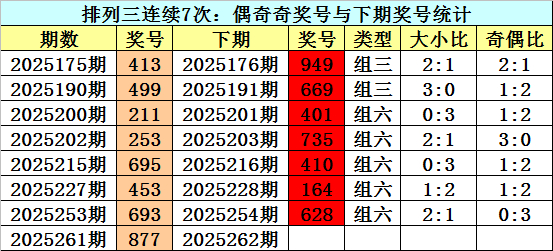 上期回顾:排列三2025261期奖号为:877。类型:组三,奇偶:偶奇奇,大小:大大大。