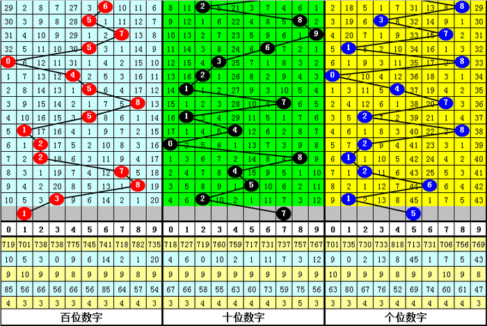 在历年同期中两码合开出年限分别为:5出现9年,0出现7年,3、4、6出现6年,2、7、8、9出现5年,1出现2年,第2025269期预计两码合出现:2、6、8。